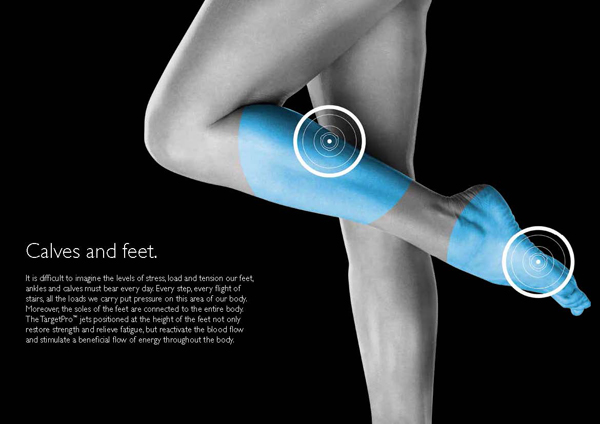 A lábmagasságba pozícionált TargetPro™ fúvókák nem csak helyreállítják az ön erejét és csökkentik a fáradtságát, hanem reaktiválják a véráramot és az egész test számára előnyös áramlattal stimulálják a testet.