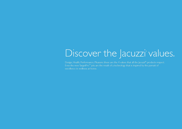 Dizájn, egészség, teljesítmény, élvezet: ez az a négy érték, amit a Jacuzzi® termékek tiszteletben tartanak.
