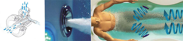 A Jacuzzi ® hidromasszázs sugarai a legmegfelelőbb irányból érik a testet a mély, de sosem fájdalmas masszázshoz. Ezen felül, a valóban testre szabott kezelés végett, a fúvókák minden irányban 30 fokkal állíthatók. A talp- és hátfúvókáknak köszönhetően a rendszer az egész testet frissíti és élénkíti, míg a nap összes fáradtsága és feszültsége elmúlik.